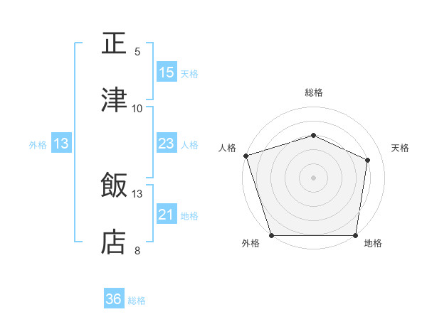 正津 飯店さんを姓名の画数から五運を鑑定