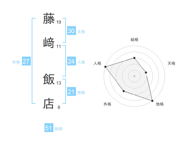 藤﨑 飯店さんの総格は51画の3点!