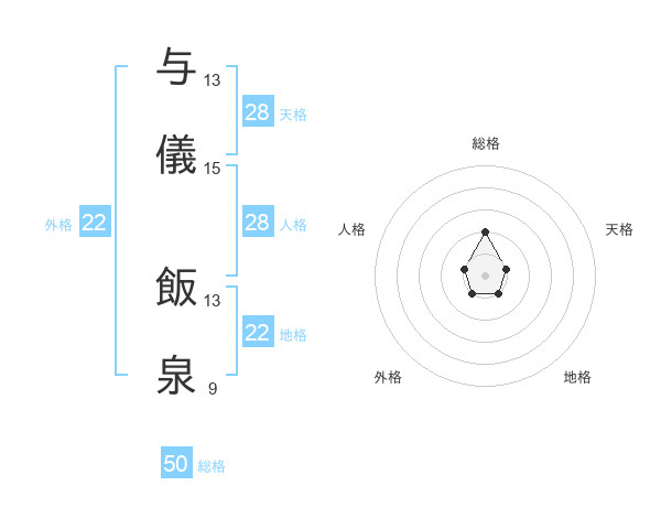 与儀 飯泉さんを姓名の画数から五運を鑑定