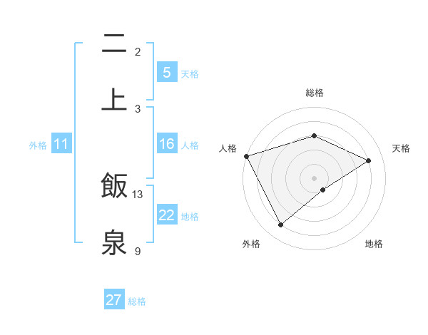 二上 飯泉さんを姓名の画数から五運を鑑定