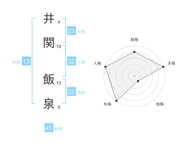 井関 飯泉さんの総格は45画の4点!