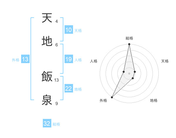 天地 飯泉さんを姓名の画数から五運を鑑定