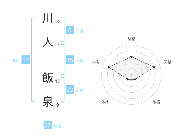 川人 飯泉さんを姓名の画数から五運を鑑定