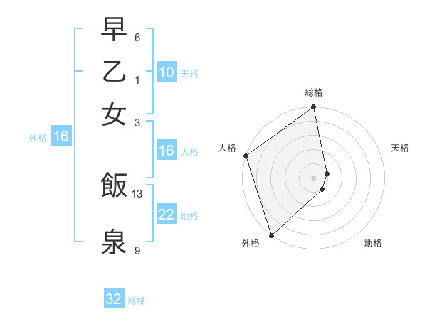 早乙女 飯泉さんを姓名の画数から五運を鑑定