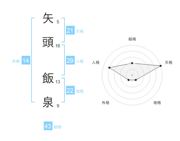 矢頭 飯泉さんを姓名の画数から五運を鑑定