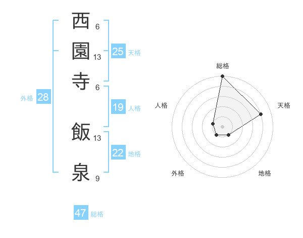 西園寺 飯泉さんを姓名の画数から五運を鑑定