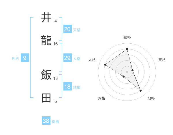 井龍 飯田さんの総格は38画の4点!