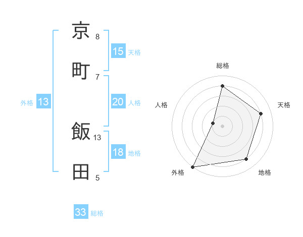 京町 飯田さんの総格は33画の4点!