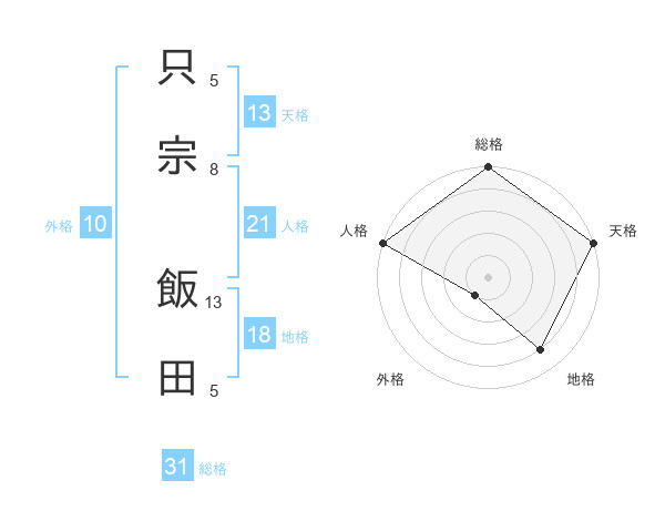 只宗 飯田さんを姓名の画数から五運を鑑定