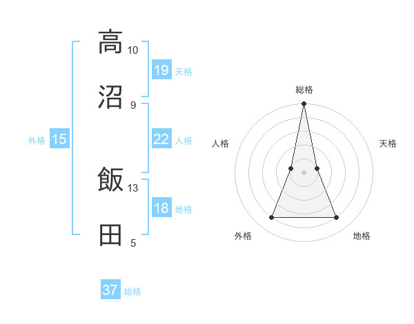 高沼 飯田さんを姓名の画数から五運を鑑定