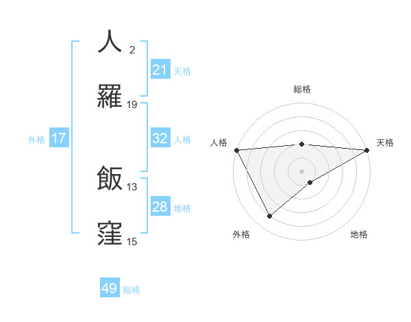 人羅 飯窪さんの天格は21画の5点!