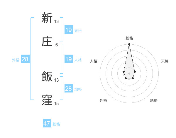 新庄 飯窪さんの総格は47画の5点!