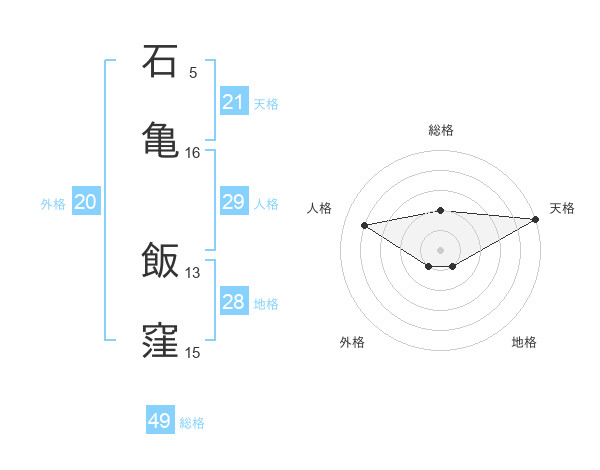 石亀 飯窪さんの天格は21画の5点!