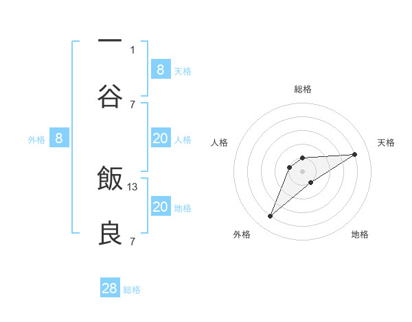 一谷 飯良さんの総格は28画の1点!