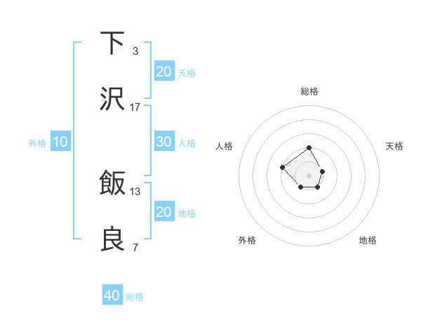 下沢 飯良さんを姓名の画数から五運を鑑定