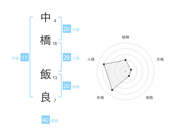 中橋 飯良さんの地格は20画の1点!