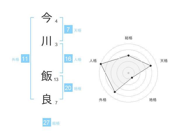 今川 飯良さんの総格は27画の3点!