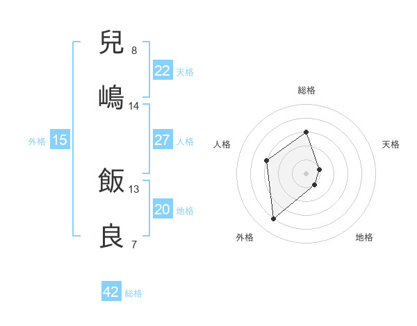 兒嶋 飯良さんの総格は42画の3点!