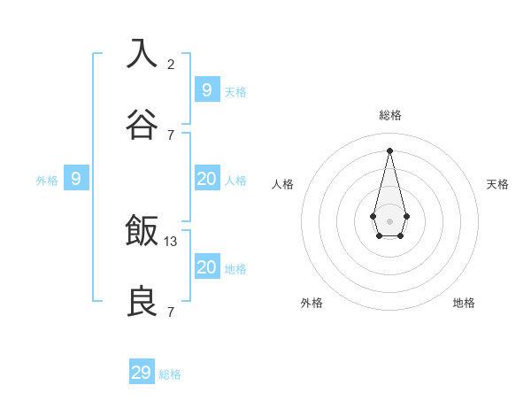 入谷 飯良さんを姓名の画数から五運を鑑定