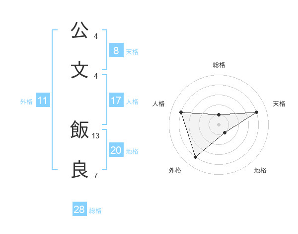 公文 飯良さんの総格は28画の1点!