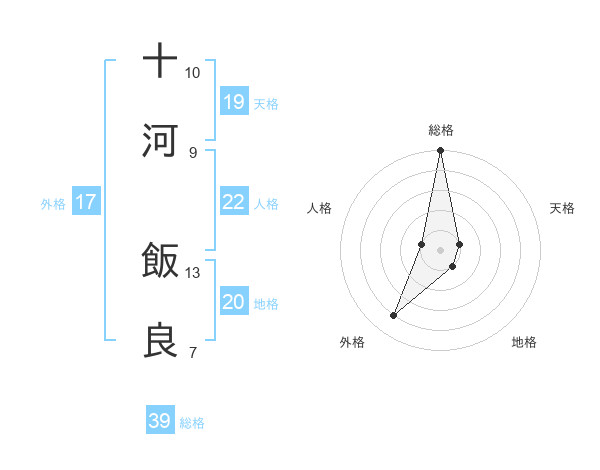 十河 飯良さんの総格は39画の5点!