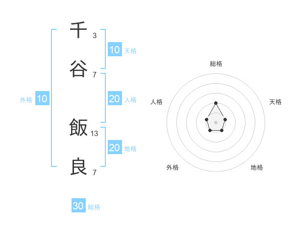 千谷 飯良さんを姓名の画数から五運を鑑定
