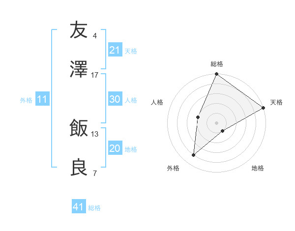 友澤 飯良さんの総格は41画の5点!