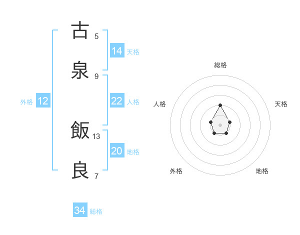 古泉 飯良さんの総格は34画の2点!