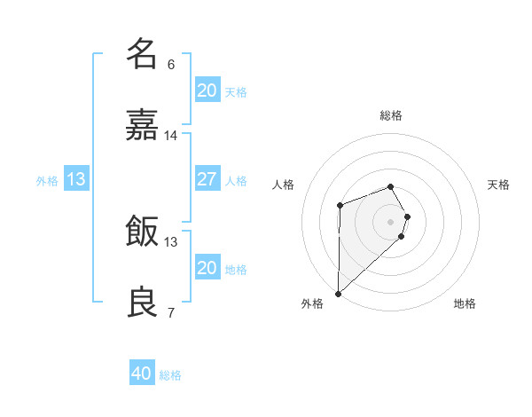 名嘉 飯良さんの外格は13画の5点!