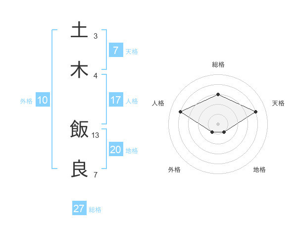 土木 飯良さんの総格は27画の3点!