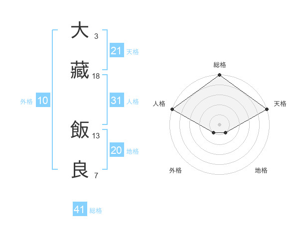 大藏 飯良さんの天格は21画の5点!
