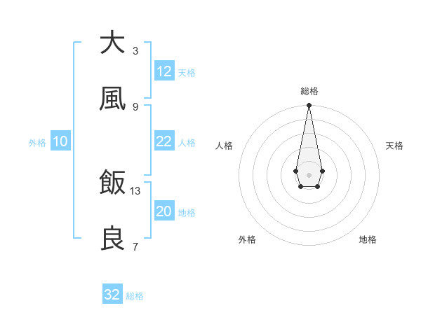 大風 飯良さんの総格は32画の5点!