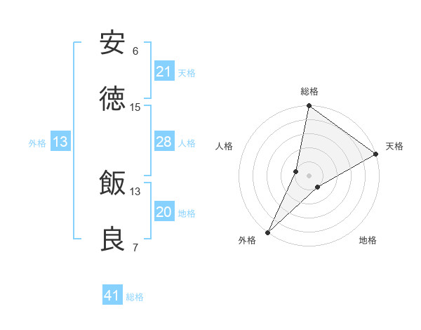安徳 飯良さんの総格は41画の5点!