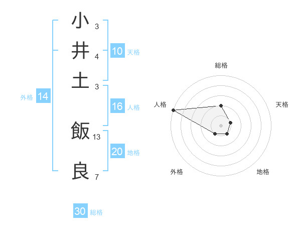 小井土 飯良さんを姓名の画数から五運を鑑定