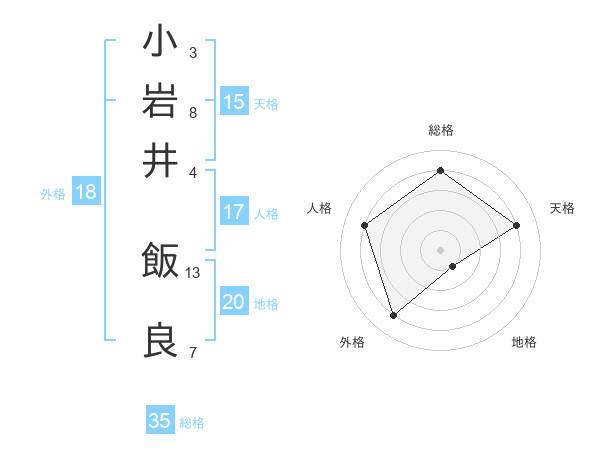 小岩井 飯良さんを姓名の画数から五運を鑑定