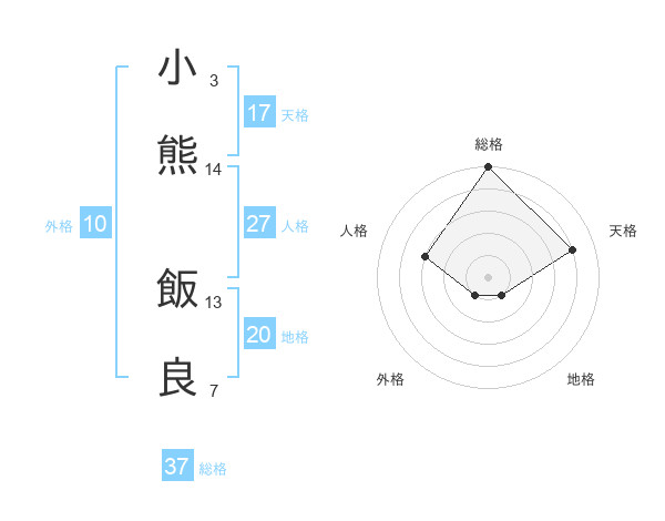 小熊 飯良さんを姓名の画数から五運を鑑定