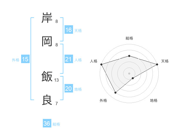 岸岡 飯良さんを姓名の画数から五運を鑑定