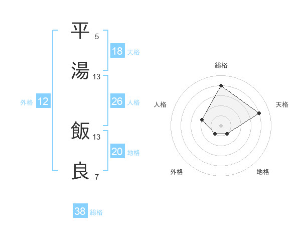 平湯 飯良さんの総格は38画の4点!
