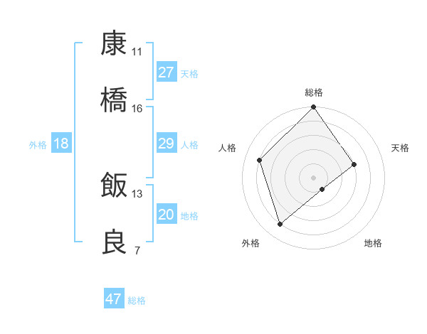 康橋 飯良さんの総格は47画の5点!