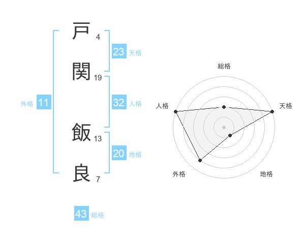 戸関 飯良さんを姓名の画数から五運を鑑定