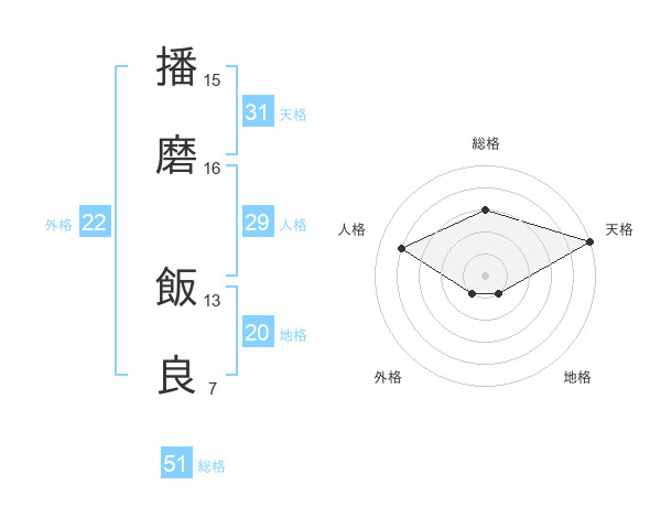 播磨 飯良さんの総格は51画の3点!