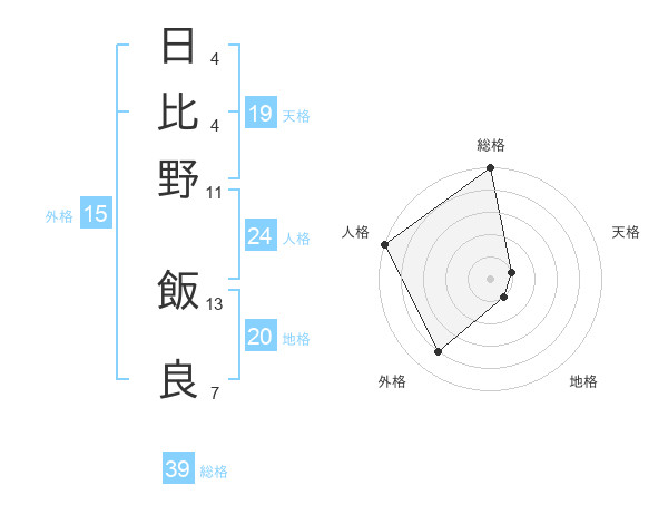 日比野 飯良さんの総格は39画の5点!