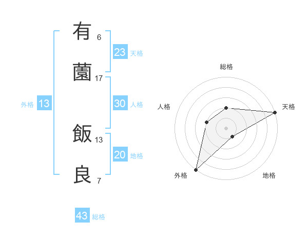 有薗 飯良さんの外格は13画の5点!