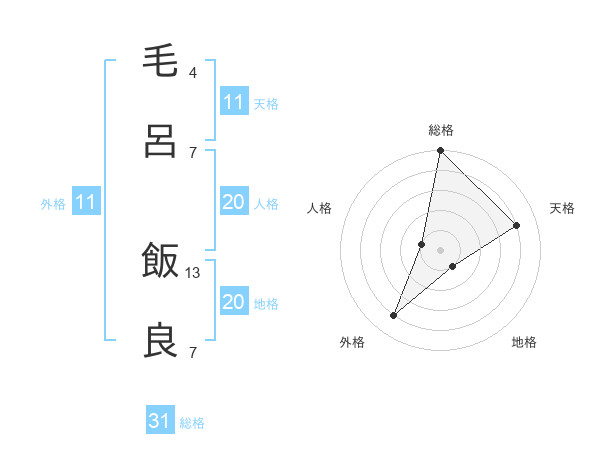 毛呂 飯良さんの総格は31画の5点!