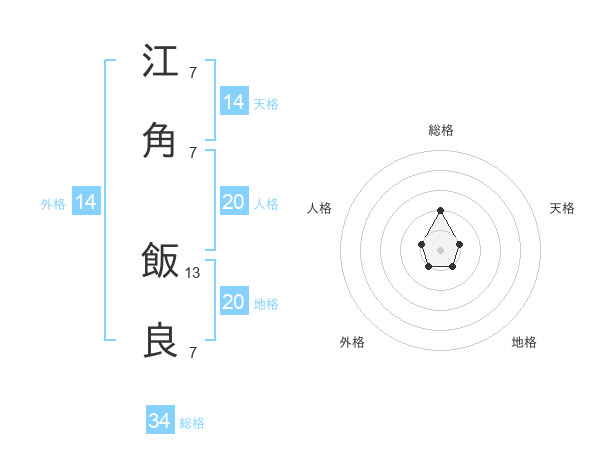 江角 飯良さんの総格は34画の2点!