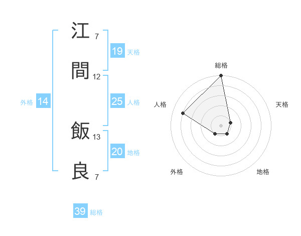 江間 飯良さんの総格は39画の5点!
