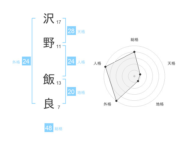 沢野 飯良さんを姓名の画数から五運を鑑定