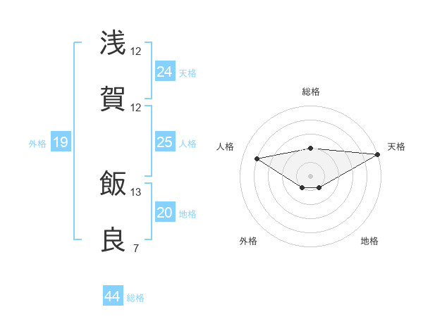 浅賀 飯良さんの天格は24画の5点!