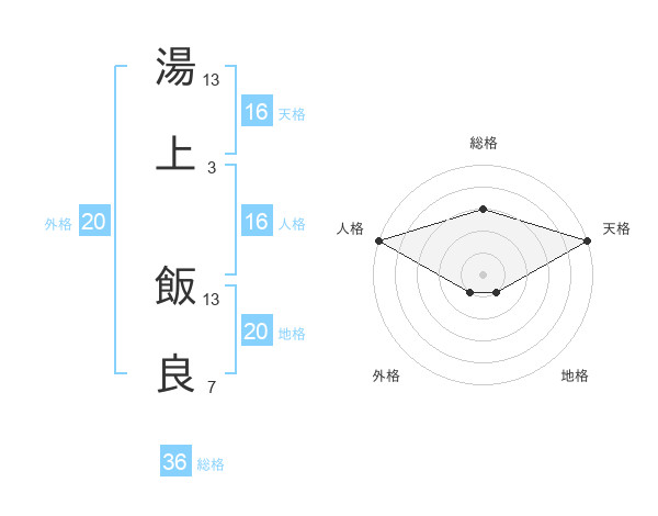 湯上 飯良さんを姓名の画数から五運を鑑定