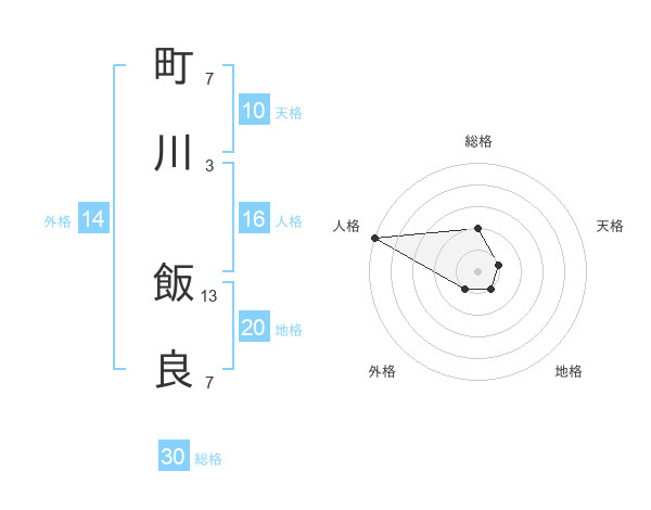 町川 飯良さんの総格は30画の2点!